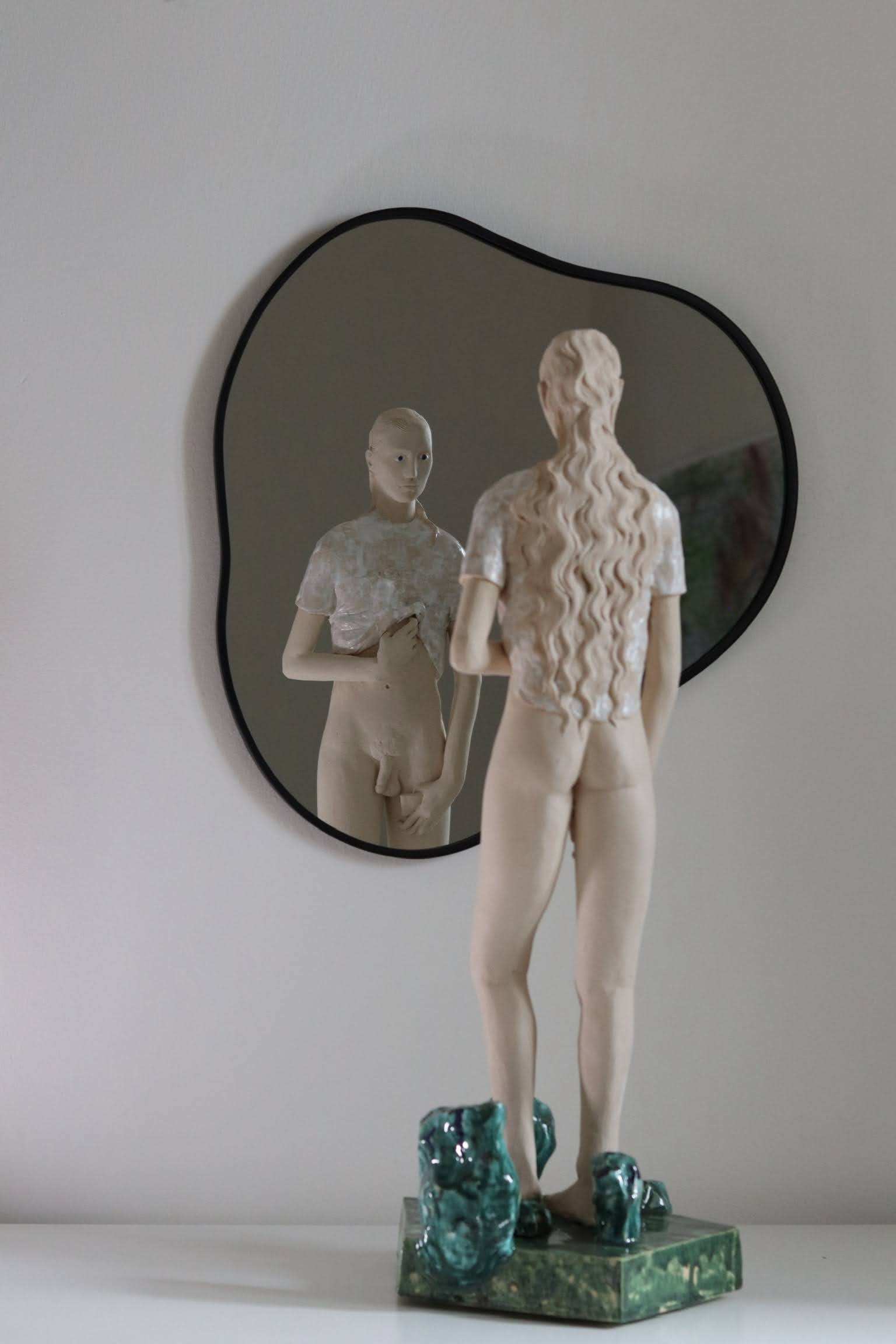 Magdalene´s hair, 2024, ceramics, 25 x 25 x 64 cm, mirror 45 cm